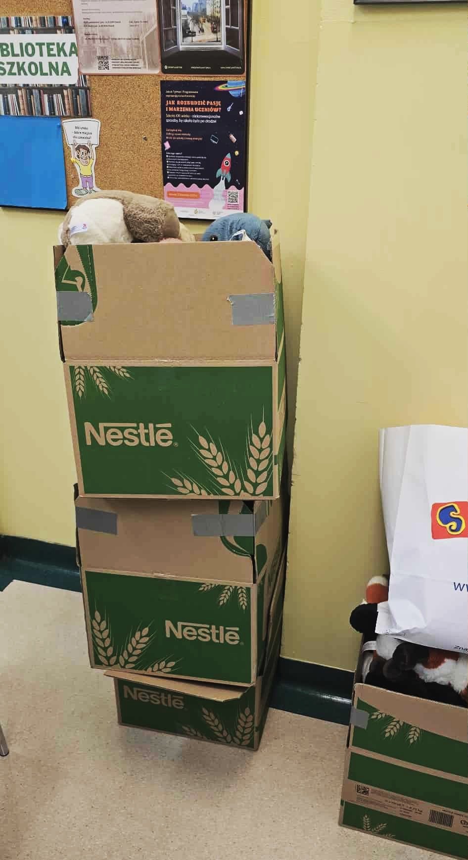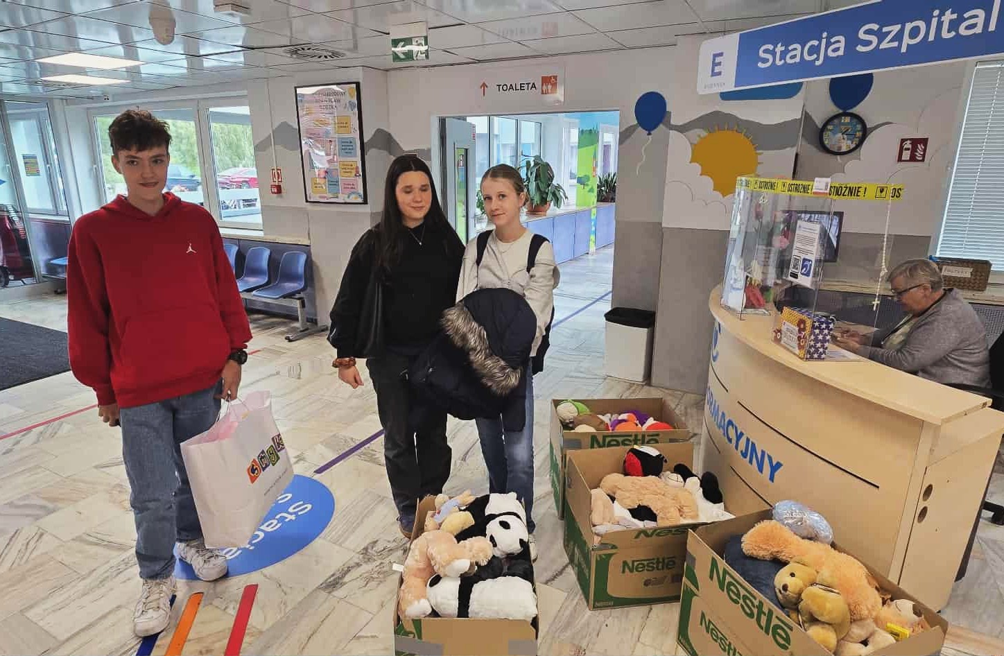 Dzięki uczennicom i uczniom naszej szkoły, udało się zawieźć do Centrum Zdrowia Dziecka górę misiów, piesków, kotków i innych przytulanek. Niektóre zostały kupione za własne kieszonkowe, a inne samodzielnie wykonane przez naszych zdolnych uczniów.