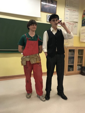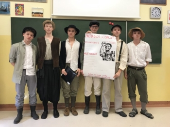 Nie tylko 2b okazała się tak twórcza. Klasy 2e1 i 2c1 również potrafiły stworzyć strategię przekonywania do swojego programu politycznego osnutego wokół "Lalki". Partie nosiły bardzo ciekawe miana: Przymierze Pracy i Rozwoju, Głos Uciśnionych, Zjednoczone Mieszczaństwo, Związek Przedsiębiorczych Obywateli, Równi i Wolni, Partia Nauki i Rozwoju Społeczeństwa. Przebrania: od sukni balowych, cylindrów, meloników, garniturów po robotnicze kombinezony. Dostaliśmy ulotki, widzieliśmy plakaty świadczące o uzdolnieniach plastycznych i graficzno-komputerowych, zjedliśmy przepyszną chałkę. Niektórzy podeszli do zadań aktorsko, odgrywając swoje role. Ważna była forma - sprostanie roli przemawiającego do zgromadzenia słuchaczy, a wszystko z wykorzystaniem tekstu powieści Prusa.