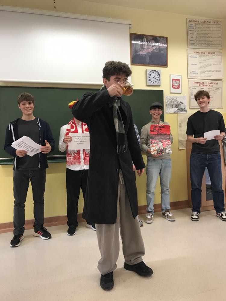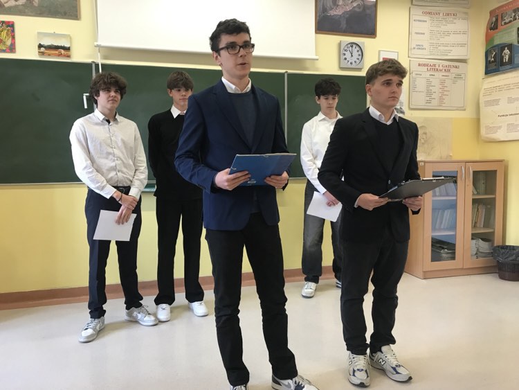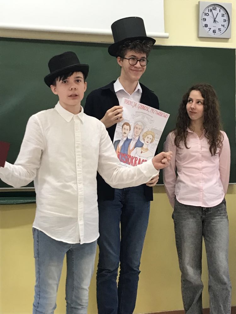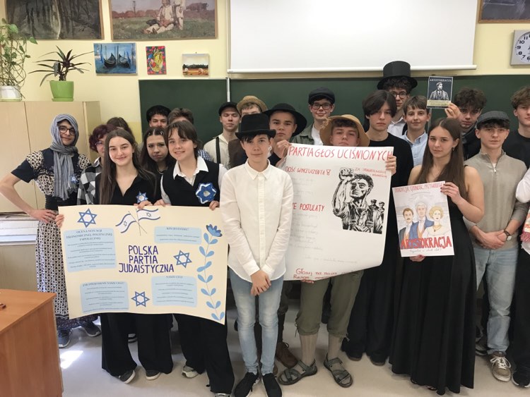 "Na wtorkowej lekcji języka polskiego, która odbyła się 25 marca 2025r., przeprowadziliśmy symulację wiecu wyborczego, inspirowanego powieścią Lalka Bolesława Prusa. Uczniowie zostali podzieleni na pięć grup, z których każda reprezentowała inną warstwę społeczną występującą w utworze: arystokrację, biedotę, mieszczaństwo żydowskie, inteligencję oraz mieszczaństwo polsko-niemieckie.