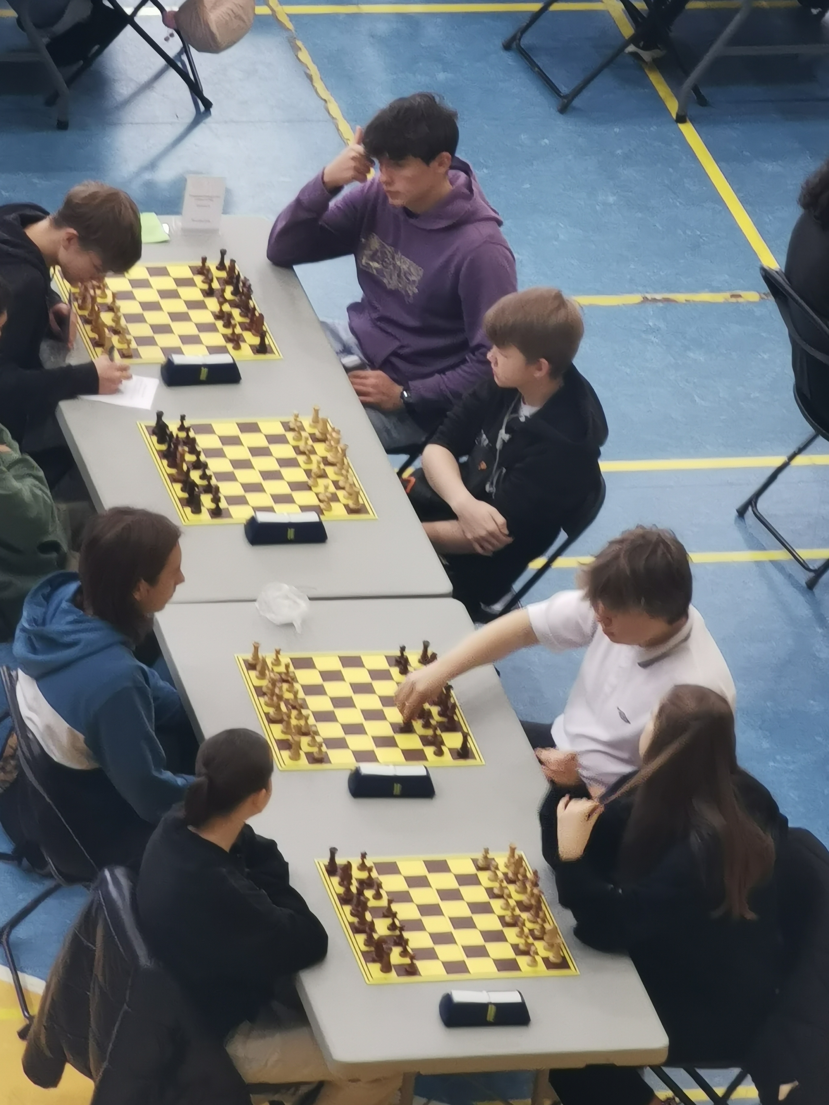 25.10.2025 r. nasza szkoła, a dokładniej uczniowie – zespół: Sołtysik Tadeusz kl. 1F, Marszałek Jakub kl. 2E, Laskus Emil kl. 2E, Skolmowska Maja kl. 1C oraz rezerwa Główka Adam 1D, Świtalski Filip kl. 1D, Sędek Adam kl. 3D wzięli udziału w imprezie szachowej Drużynowych Mistrzostwach Mazowsza Szkół Ponadpodstawowych w Szachach Szybkich.
