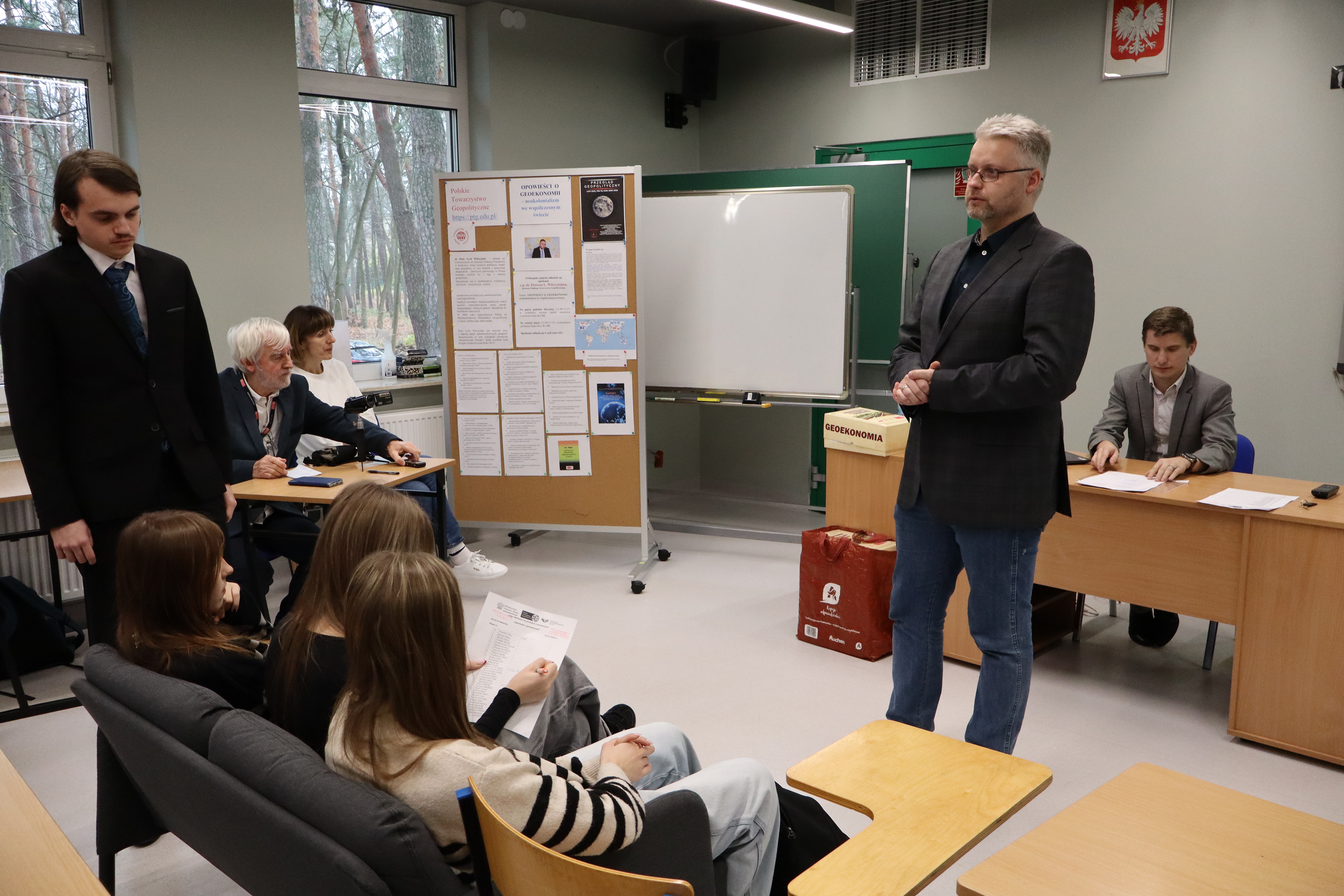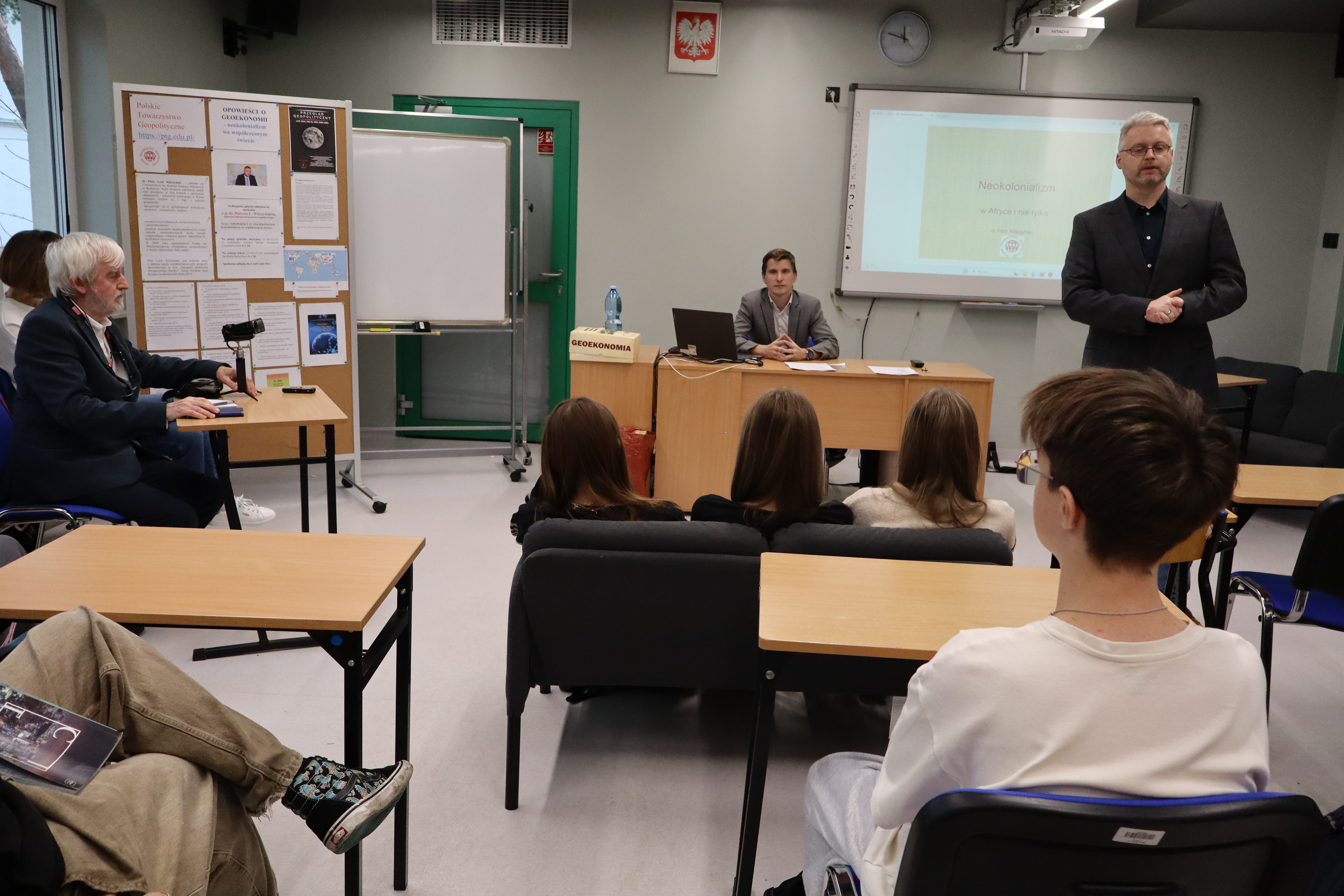 14 listopada 2025 gościliśmy w naszej szkole dr. Piotra Wilczyńskiego, prezesa Polskiego Towarzystwa Geopolitycznego.