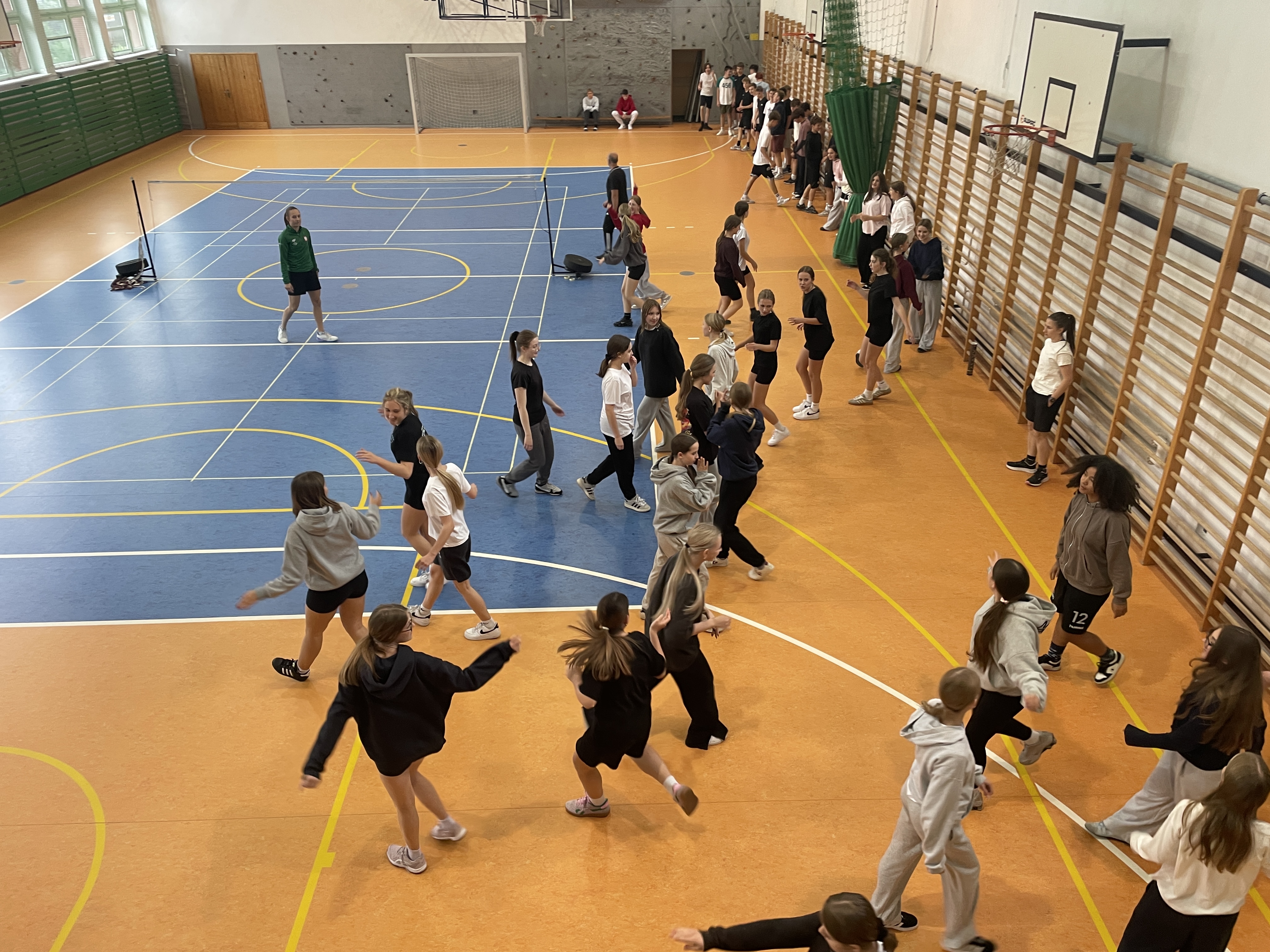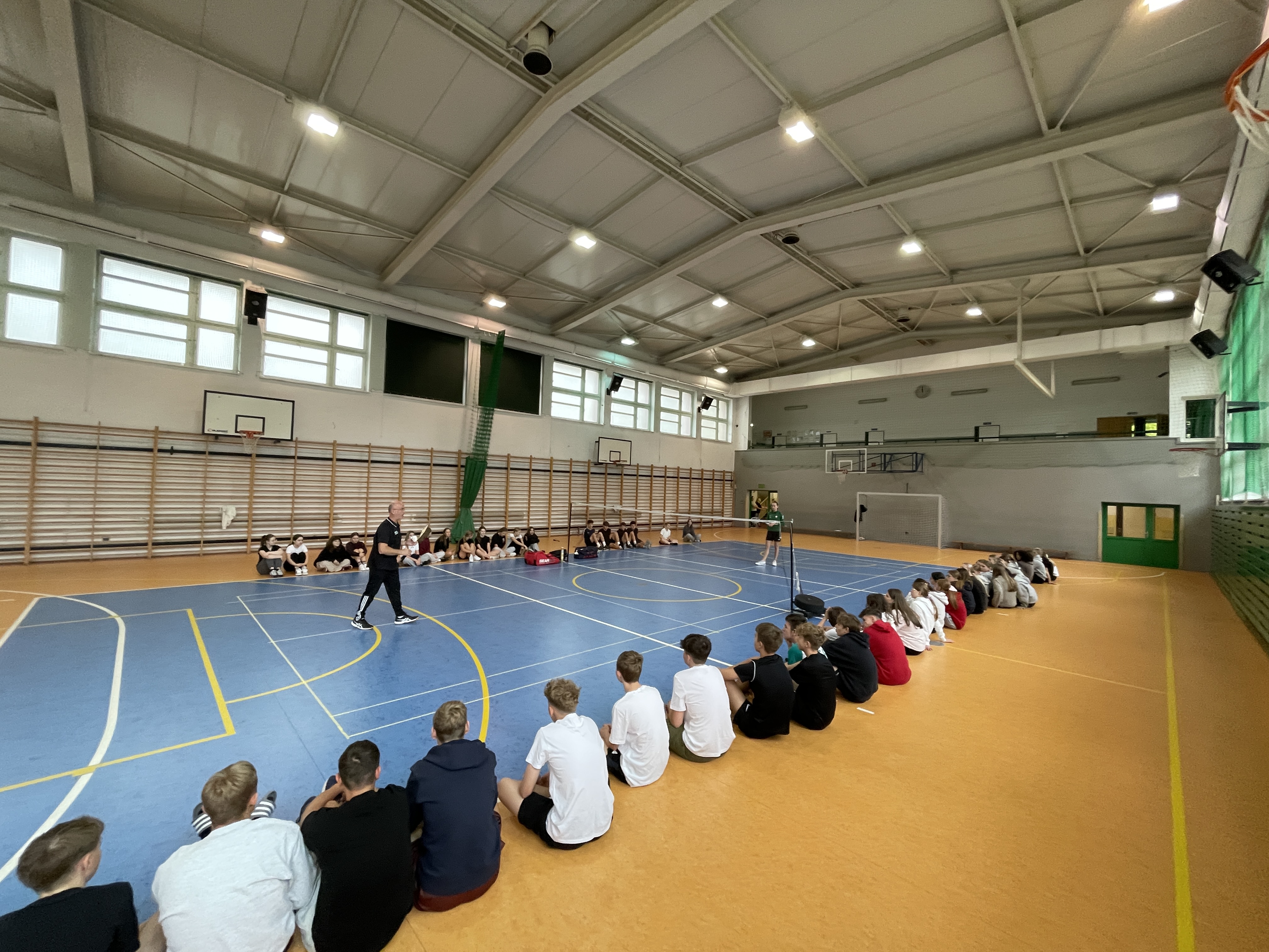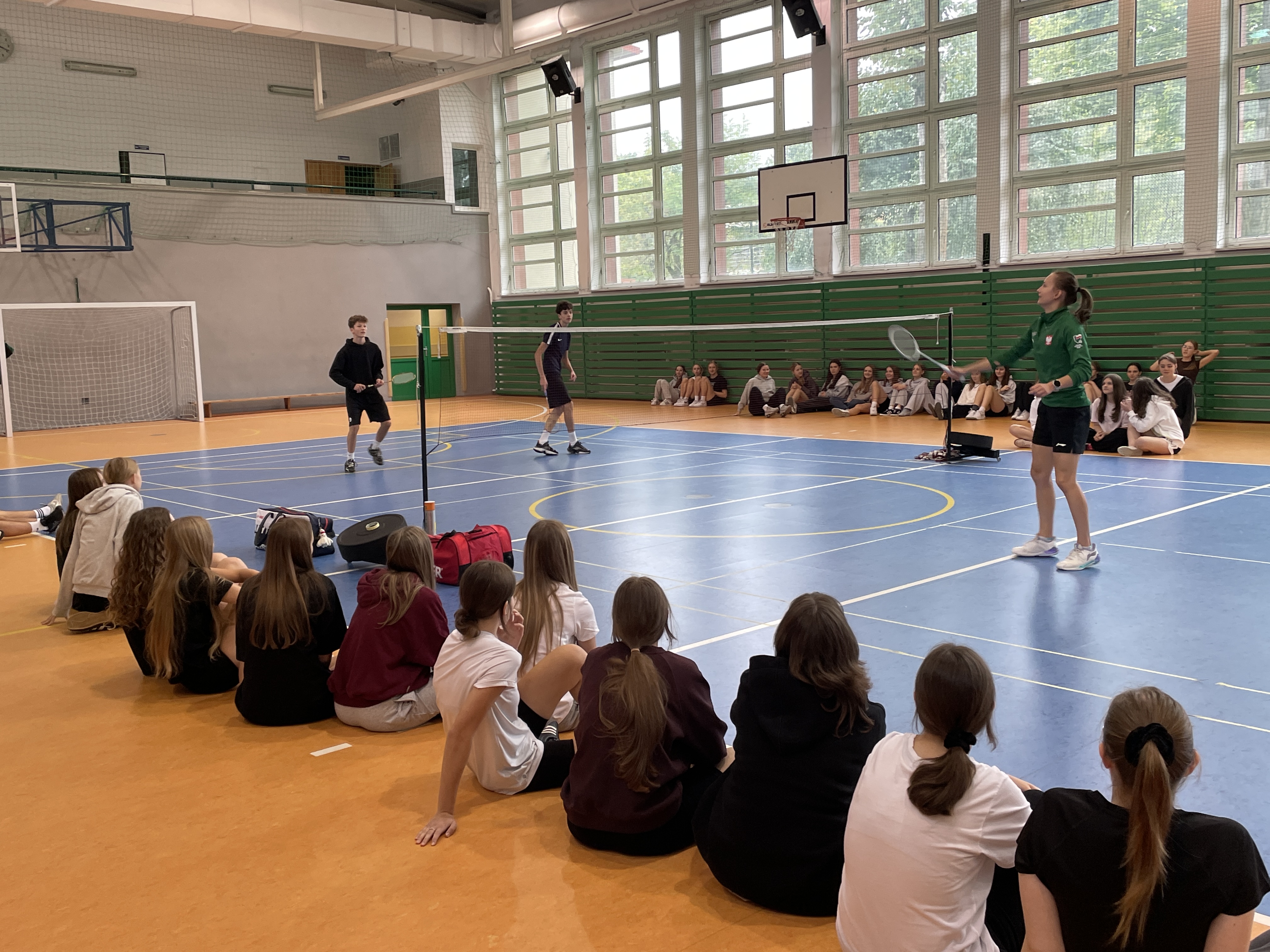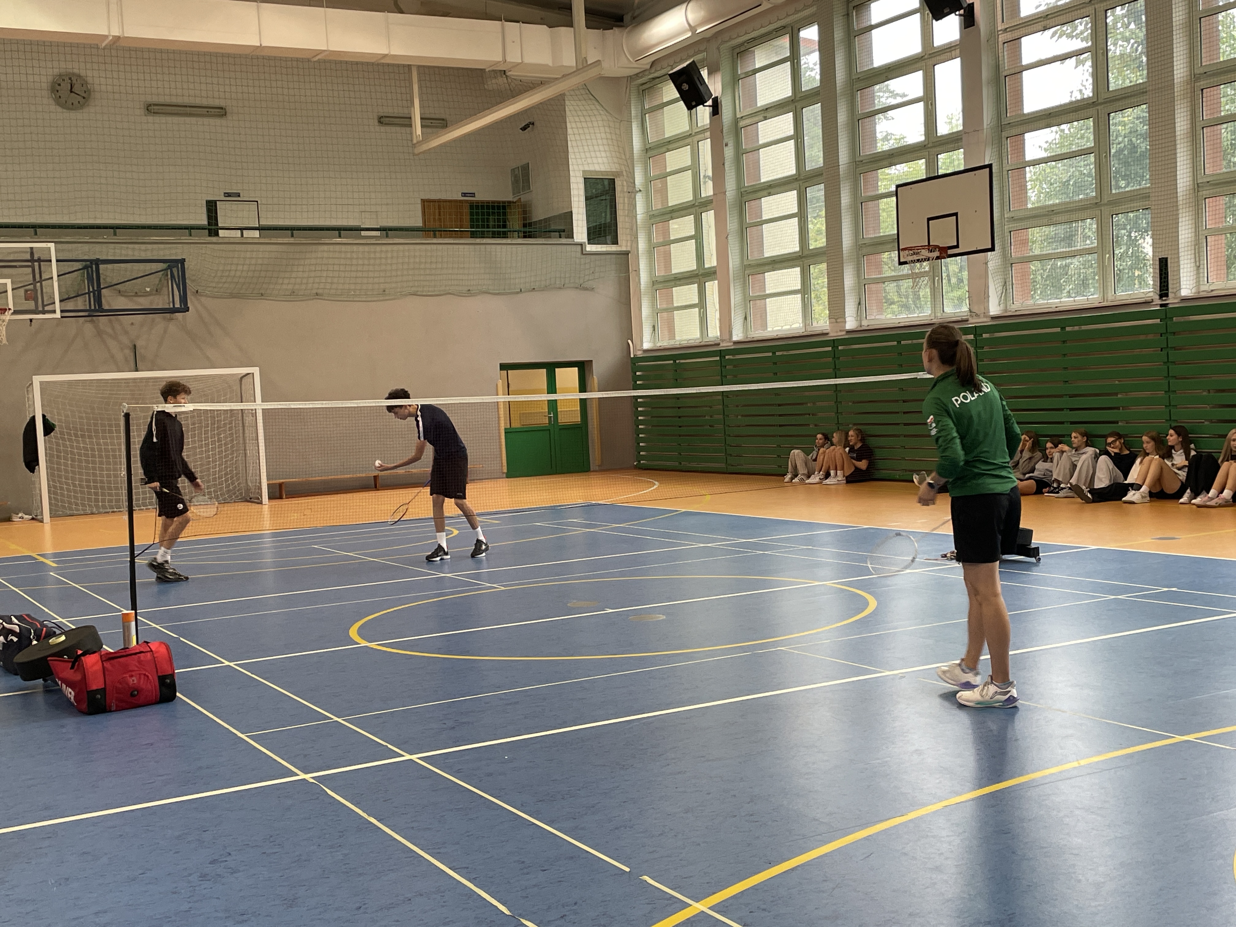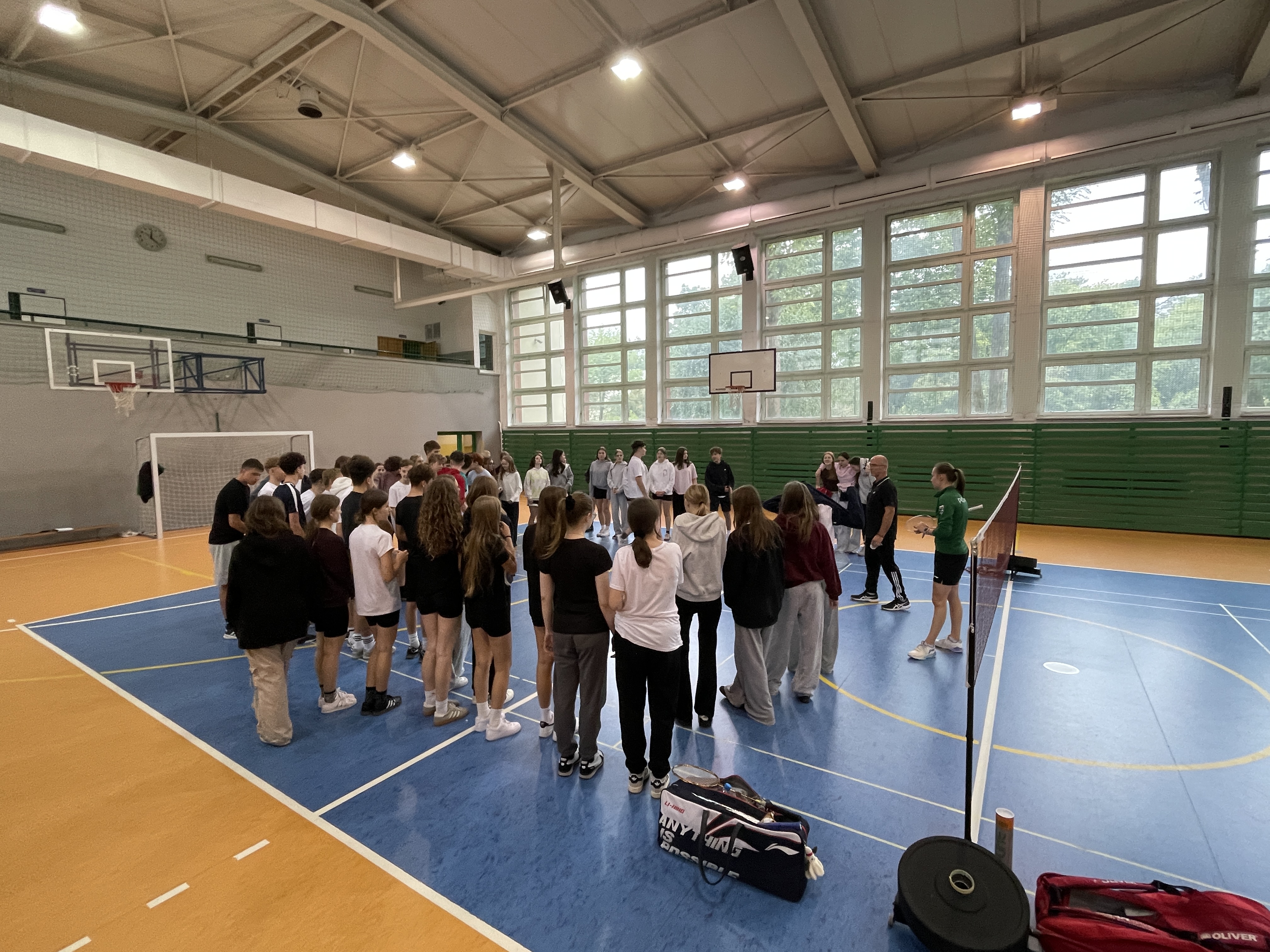 We wtorek 30 września gościliśmy Weronikę Górniak ,zawodniczkę KADRY NARODOWEJ BADMINTONA . Wicemistrzynię Polski i multimedalistkę wielu turniejów międzynarodowych . Weronika zaczynała przygodę z badmintonem w wieku 7 lat pod opieką Roberta Wróblewskiego - nauczyciela Słowaka / wielokrotny Mistrz Polski seniorów i instruktorów badmintona /. Pokaz Badmintona odbył się na 2 lekcjach klas pierwszych i na długiej przerwie dla wszystkich uczniów. Weronika przeprowadziła rozgrzewkę oraz razem trenerem Robertem pokazała wybrane elementy techniczne gry singlowej. . Na koniec chętni uczniowie mogli zagrać z kadrowiczką i zmierzyć swoje umiejętności. Pokaz Badmintona został nagrodzony brawami i co najważniejsze stał się wyzwaniem dla uczniów do rozwijania swoich umiejętności na lekcjach wychowania fizycznego . Tym bardziej ,że wróciła rywalizacja badmintona na turnieju powiatowym na początku 2026 roku Mamy nadzieję na realizację drugiego pokazu gry podwójnej tzw debla. Termin będzie ustalony wkrótce .
