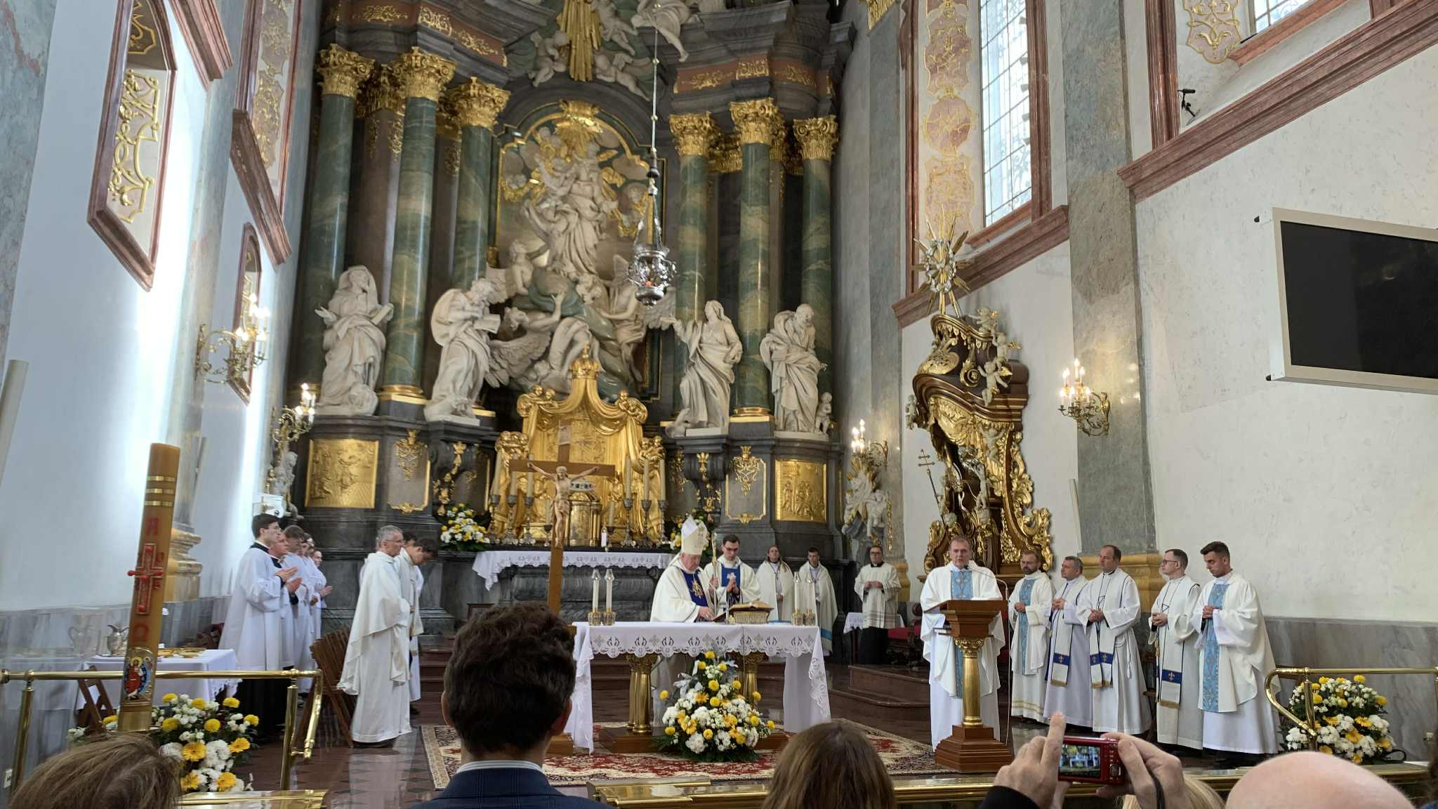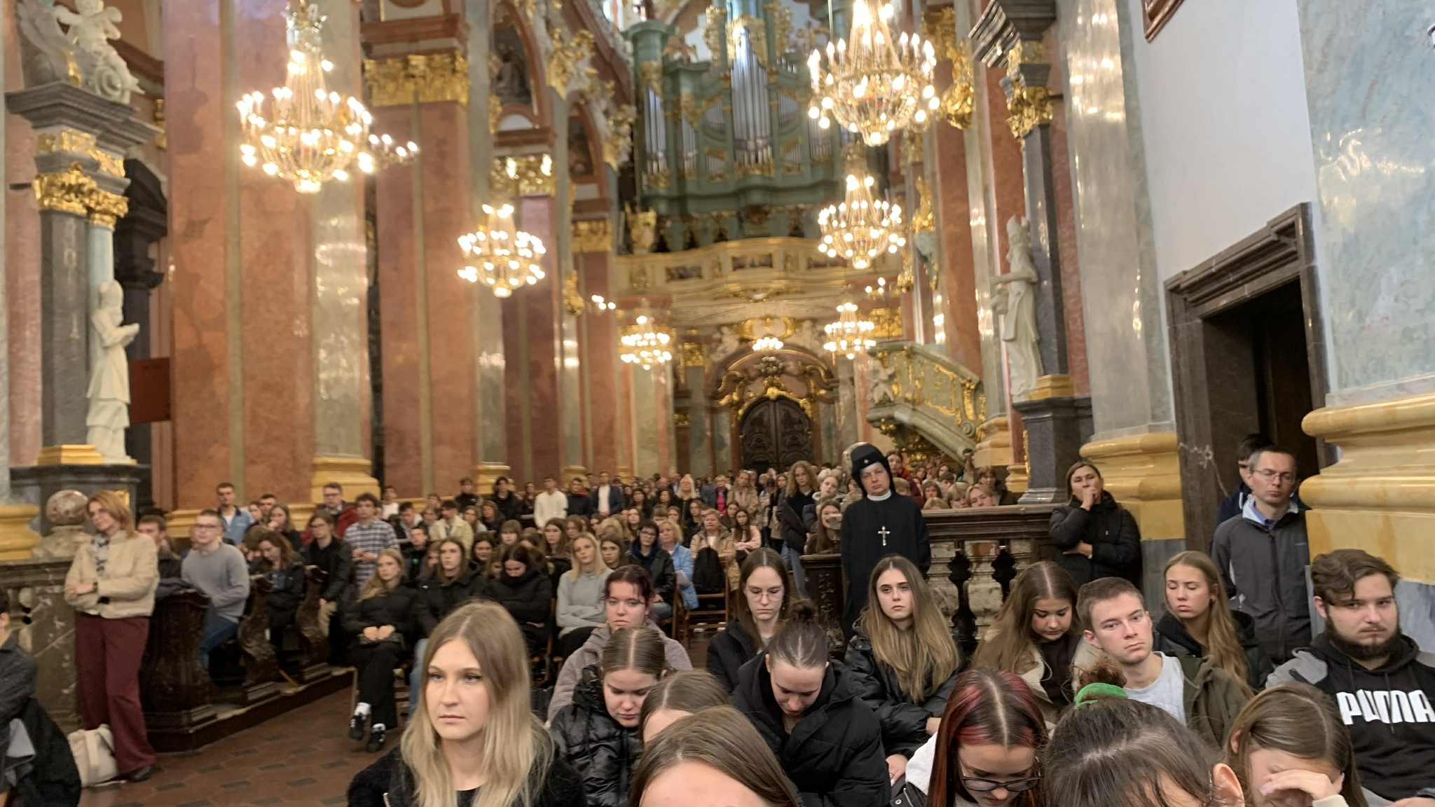 Na miejsce dojechaliśmy około godziny 9:00. Przed powitaniem z bazylice oraz katechezą mieliśmy czas na zapoznanie się z piękną architekturą miejsca. Następnie uczestniczyliśmy w uroczystej Mszy Świętej w intencji maturzystów, którą koncelebrował ksiądz biskup Romuald Kamiński. Po Eucharystii młodzież wypowiedziała akt zwierzenia Maryi.