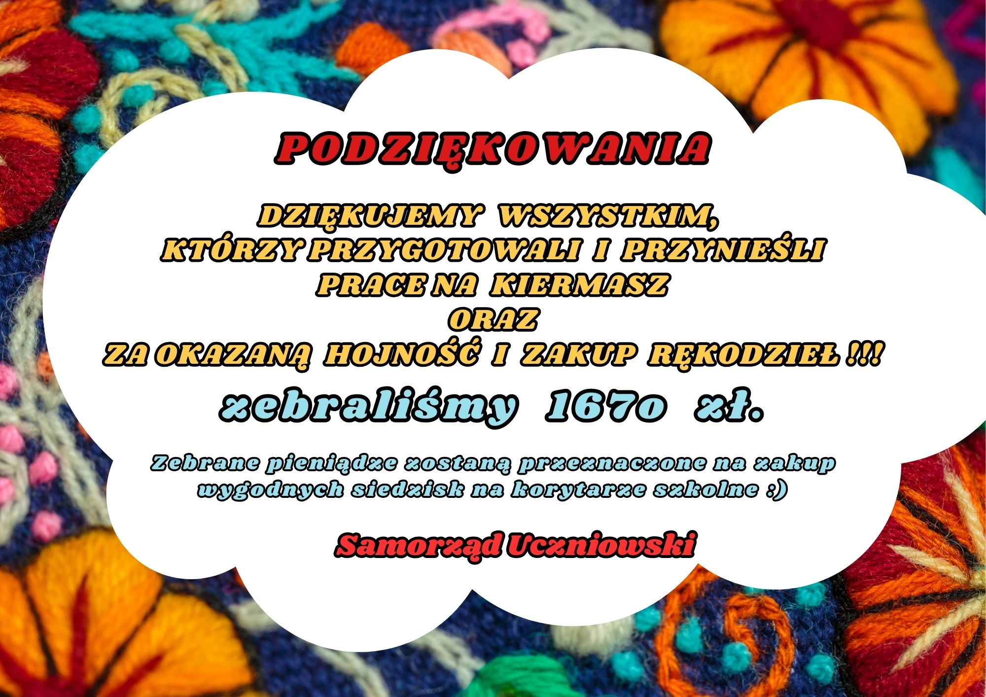 Podziękowania za udział w kiermaszu prac uczniów i pracowników szkoły
