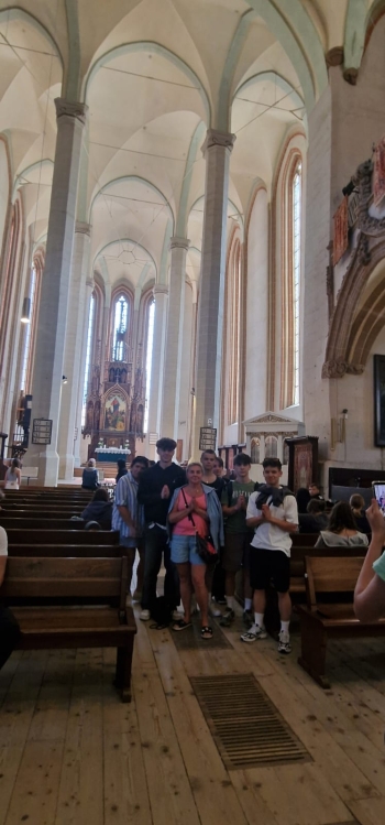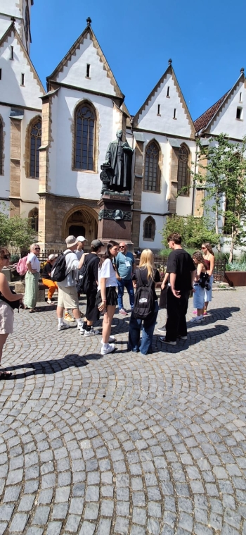 W czwartek przejechaliśmy doliną rzeki Wielka Tarnawa do Sighisoary, miasta , w którym mieszkał rozsławiony przez Brama Stockera – Vlad Dracula .Jest to średniowieczny gród wpisany na listę Światowego Dziedzictwa UNESCO. Obejrzeliśmy XIV – wieczne gotyckie mury obronne, Dom Draculi, kościół na wzgórzu. Weszliśmy na wieżę zegarową, z której podziwialiśmy panoramę miasta.