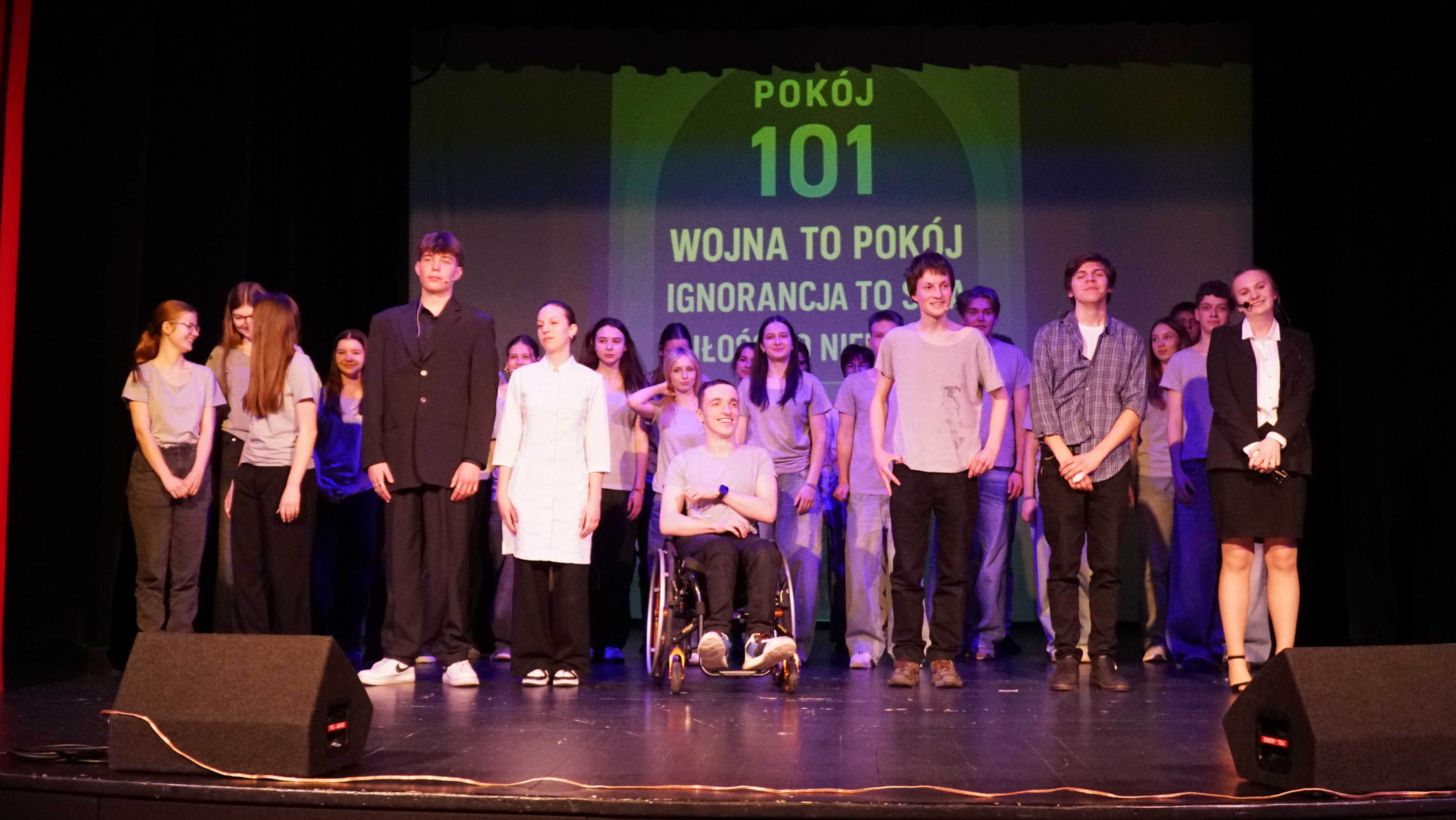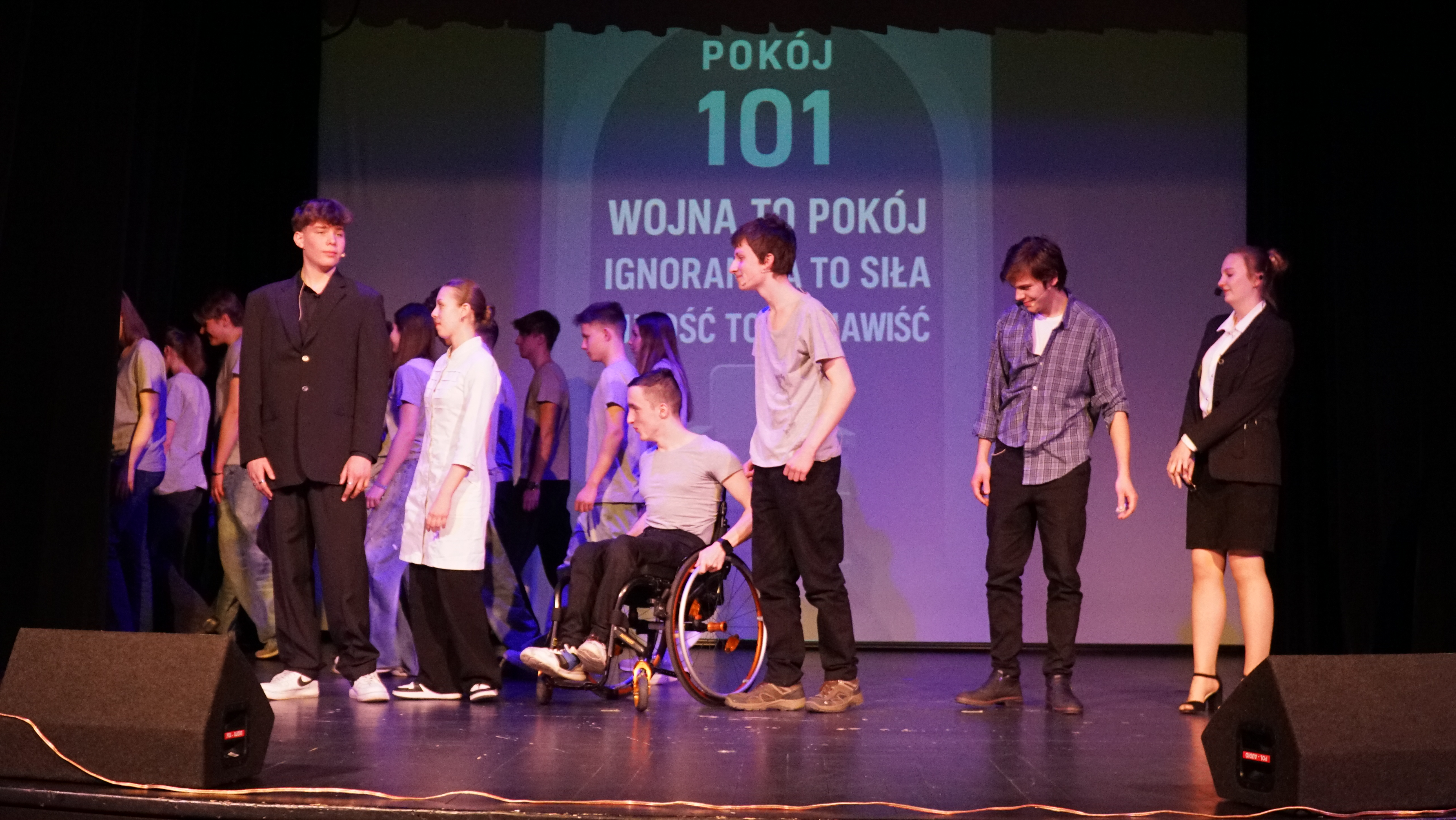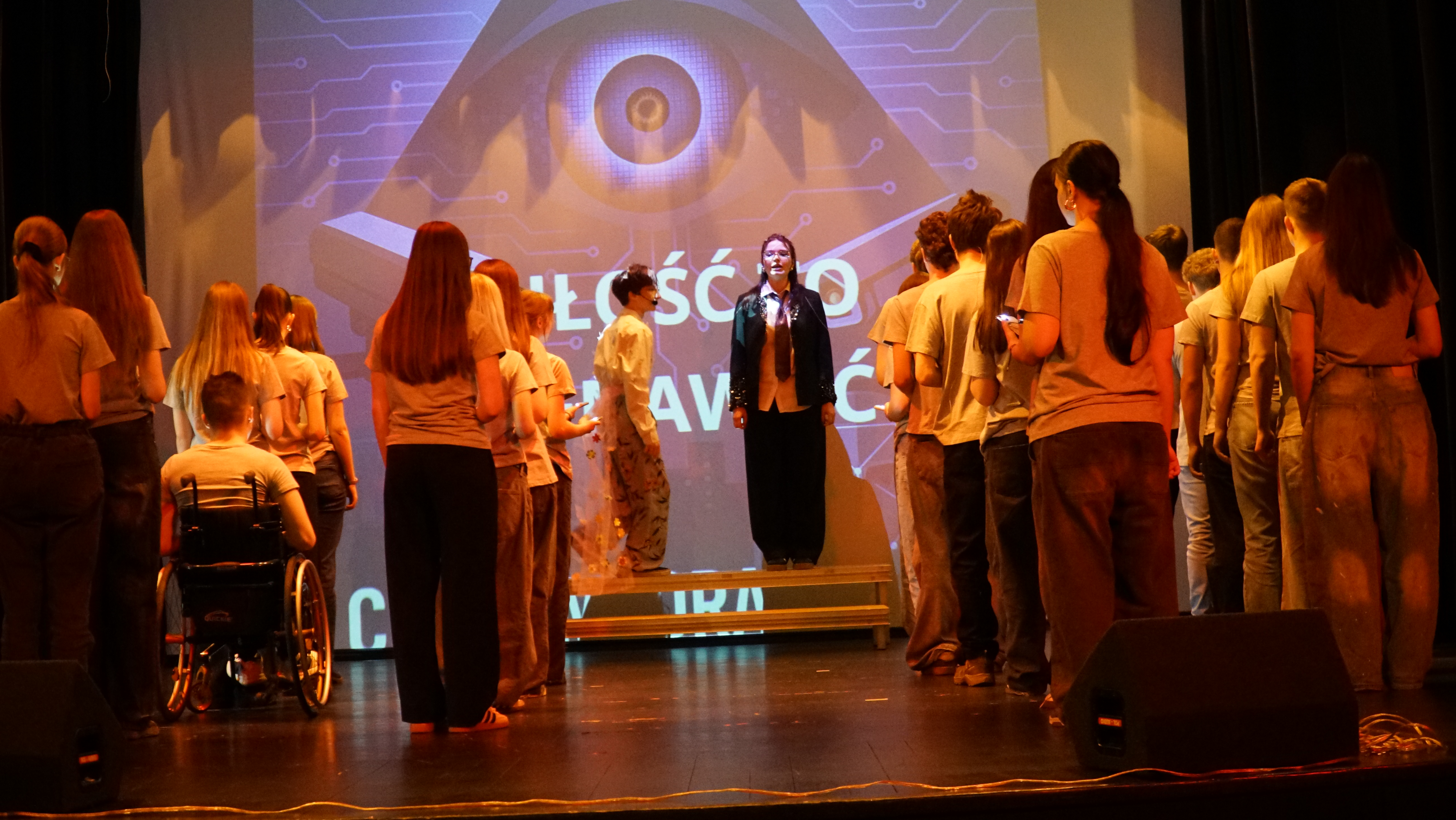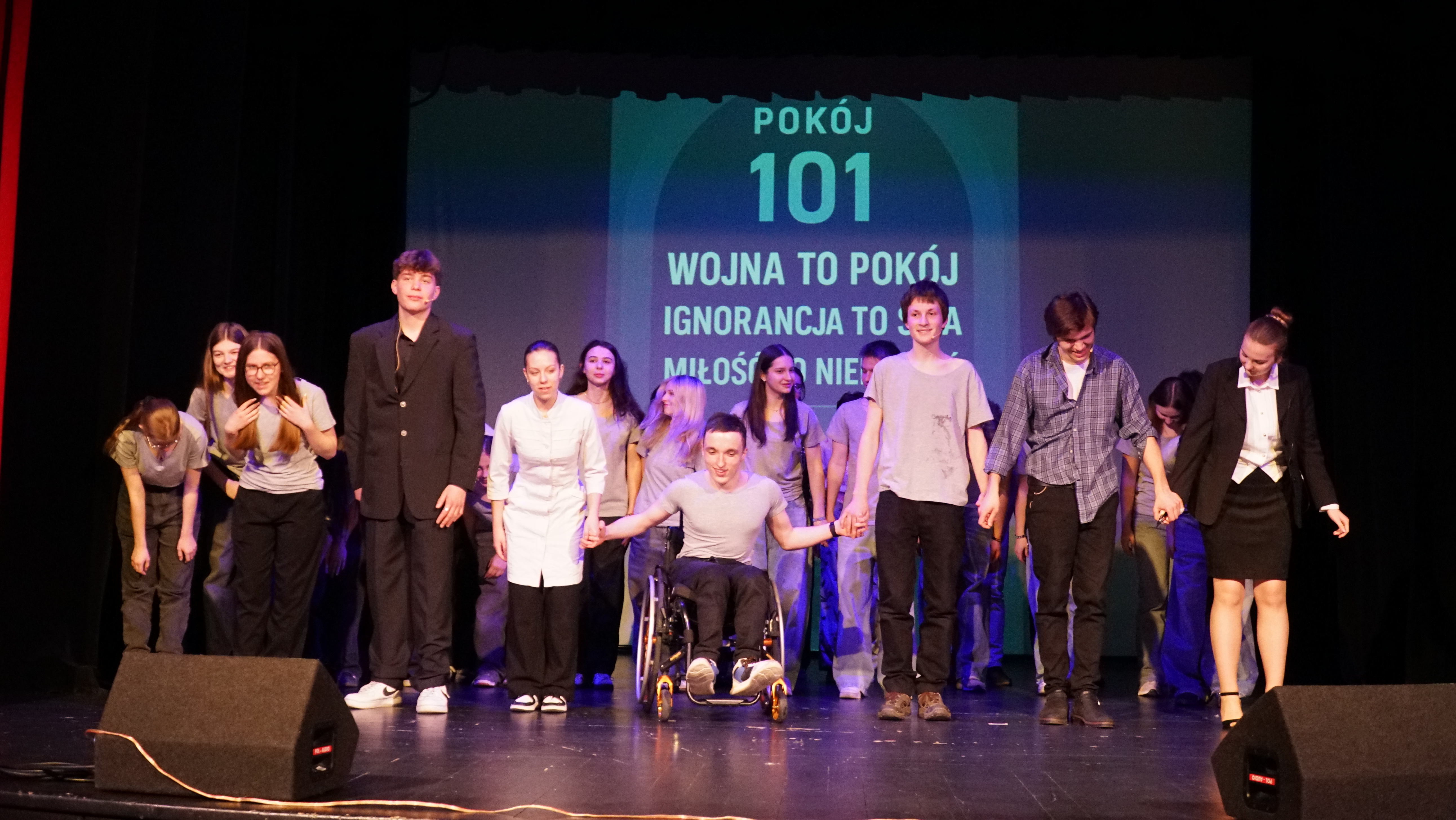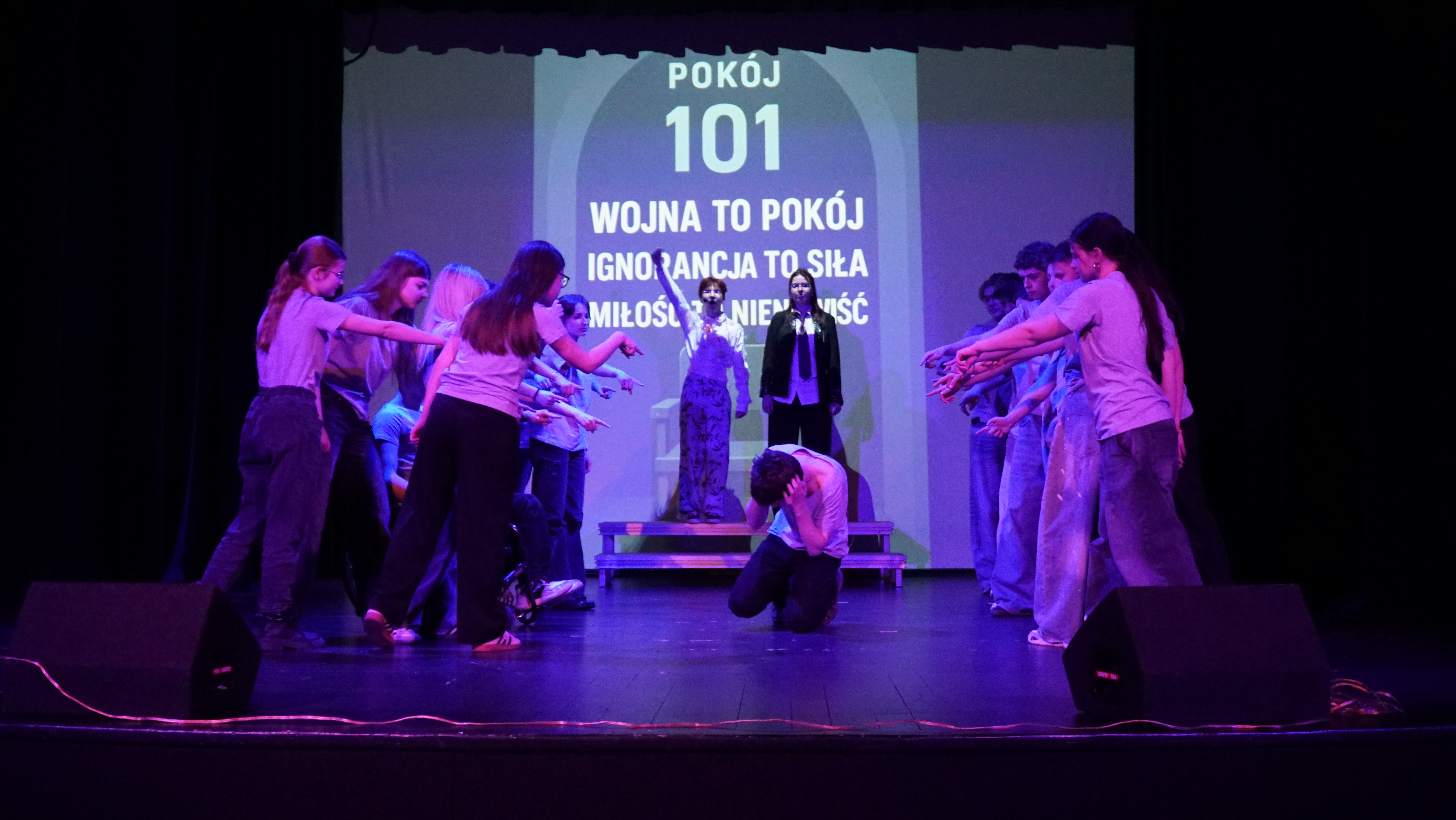 ZwyciÄ™ski spektakl „Rok 2024”, inspirowany powieÅ›ciÄ… George’a Orwella, byÅ‚ nie tylko przemyÅ›lanÄ… adaptacjÄ…, ale też odważnym gÅ‚osem mÅ‚odego pokolenia. Uczniowie nie bali siÄ™ mówić o Å›wiecie, który obserwujÄ… – nie zawsze Å‚atwym, czÄ™sto niepokojÄ…cym, ale wymagajÄ…cym uważnoÅ›ci i pytaÅ„, które warto zadawać gÅ‚oÅ›no.