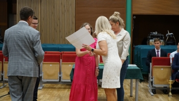 4 lipca na Sesji Rady Powiatu Otwockiego Tomasz Laskus - Starosta Powiatu Otwockiego, Dariusz Olszewski - Wicestarosta i Grażyna Kilbach - Przewodnicząca Rady Powiatu Otwockiego wręczyli nagrody zwycięskim szkołom.
