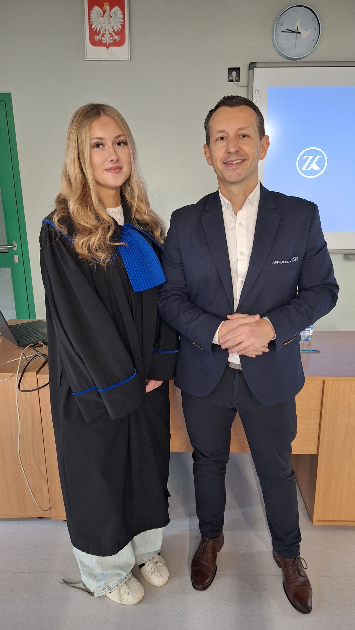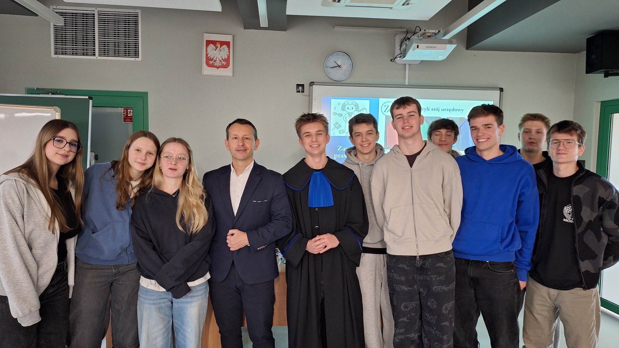 Uczniowie stojący u progu wyboru kierunku studiów mieli także okazję przymierzyć radcowską togę. Spotkanie było niezwykle inspirujące – z ogromną przyjemnością słuchaliśmy osoby, która z taką pasją opowiada o swojej pracy.