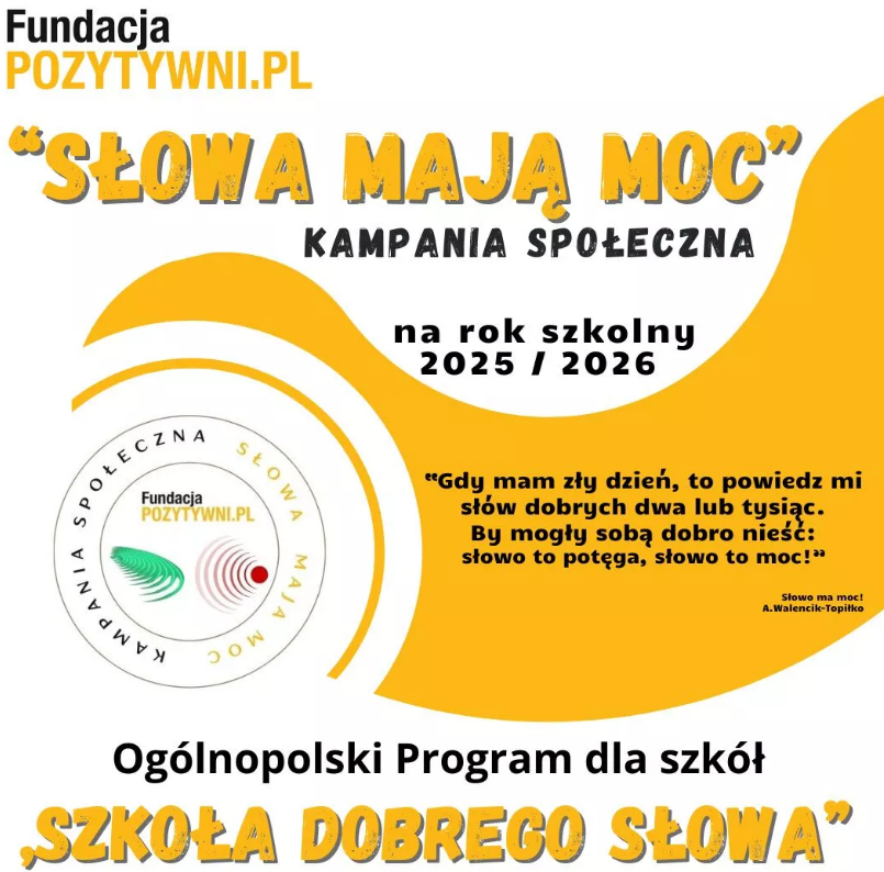 Drodzy uczniowie, informujemy, że nasza szkoÅ‚a przystÄ…piÅ‚a do ogólnopolskiego programu "SzkoÅ‚a Dobrego SÅ‚owa".