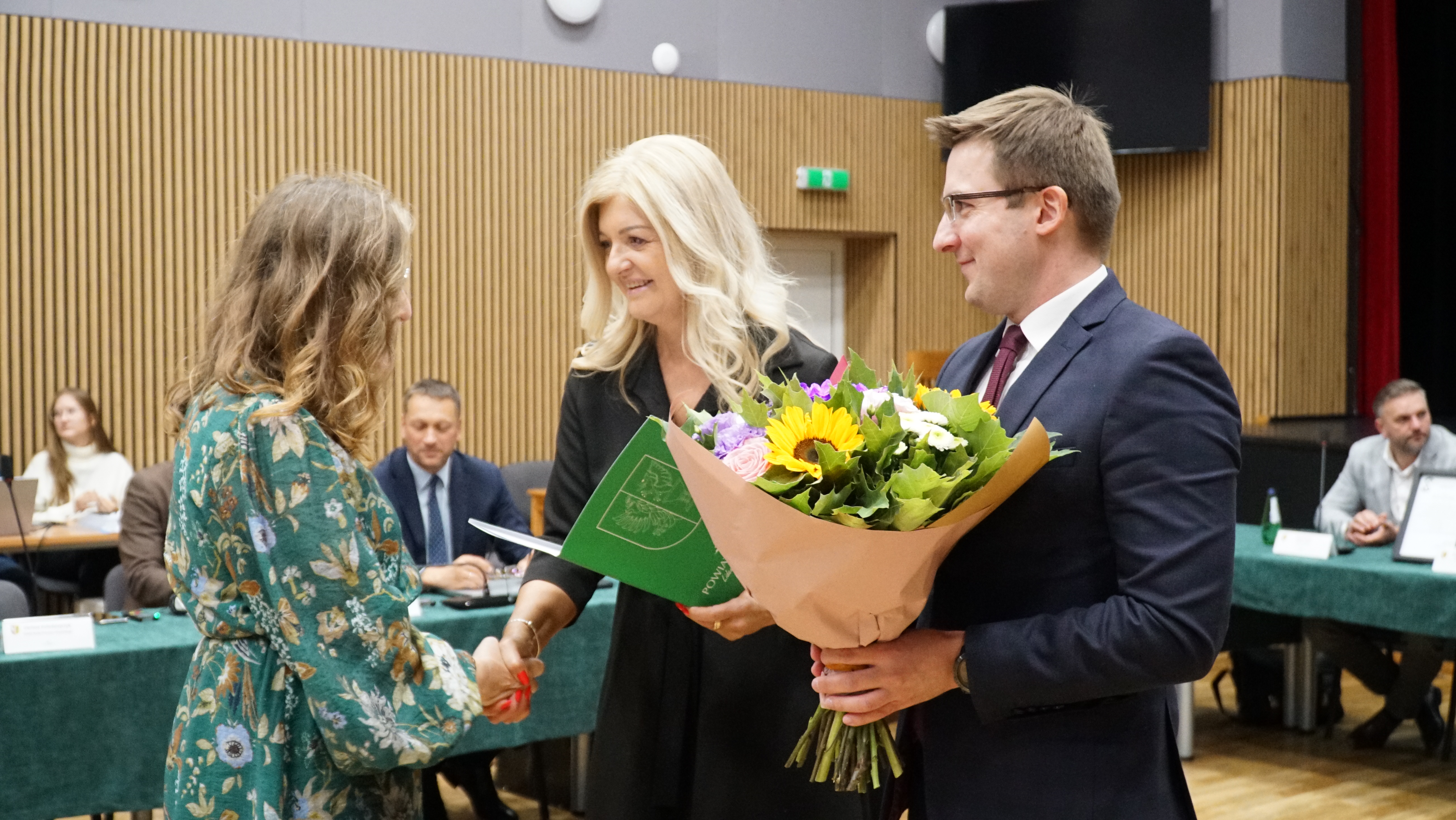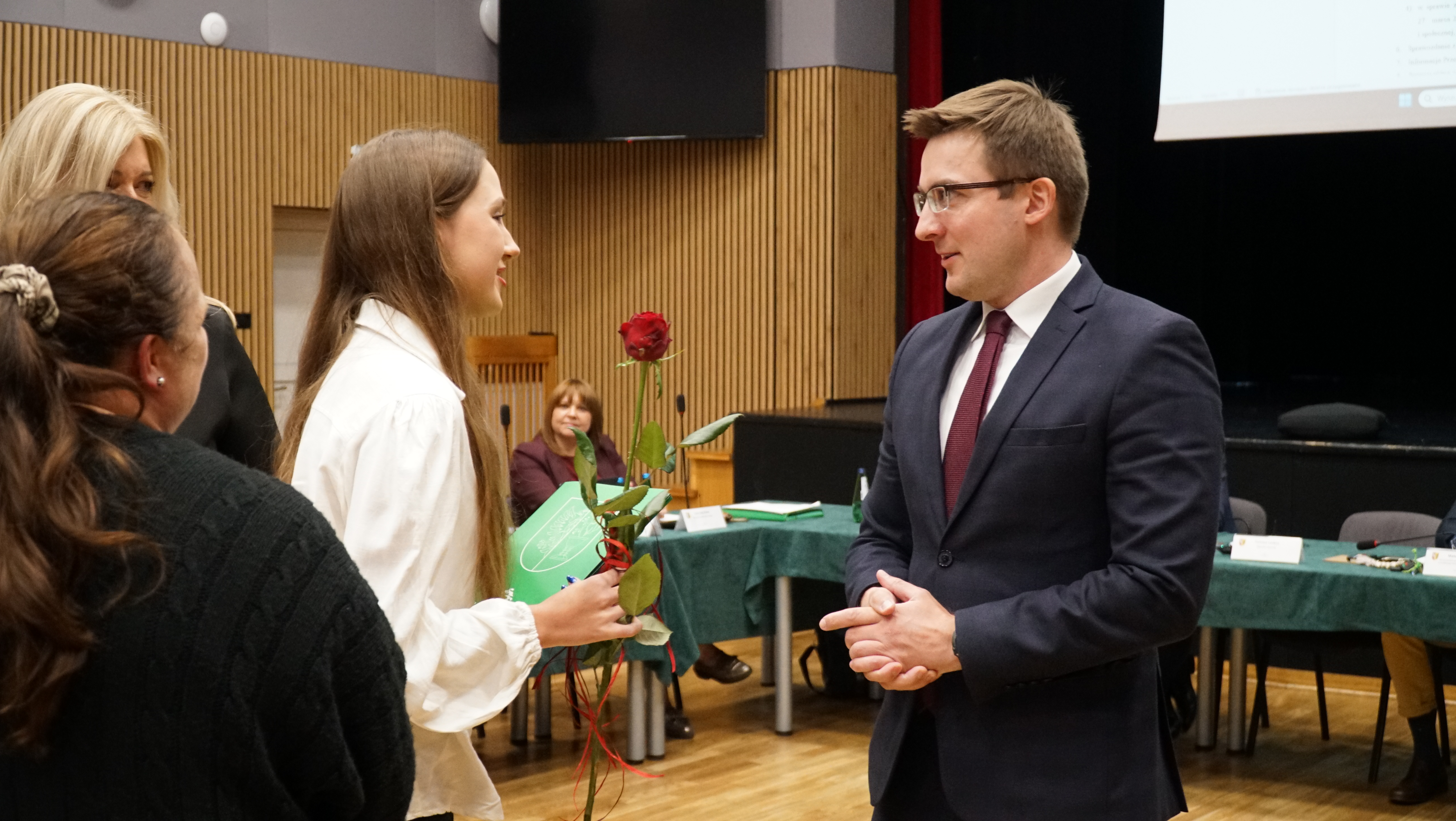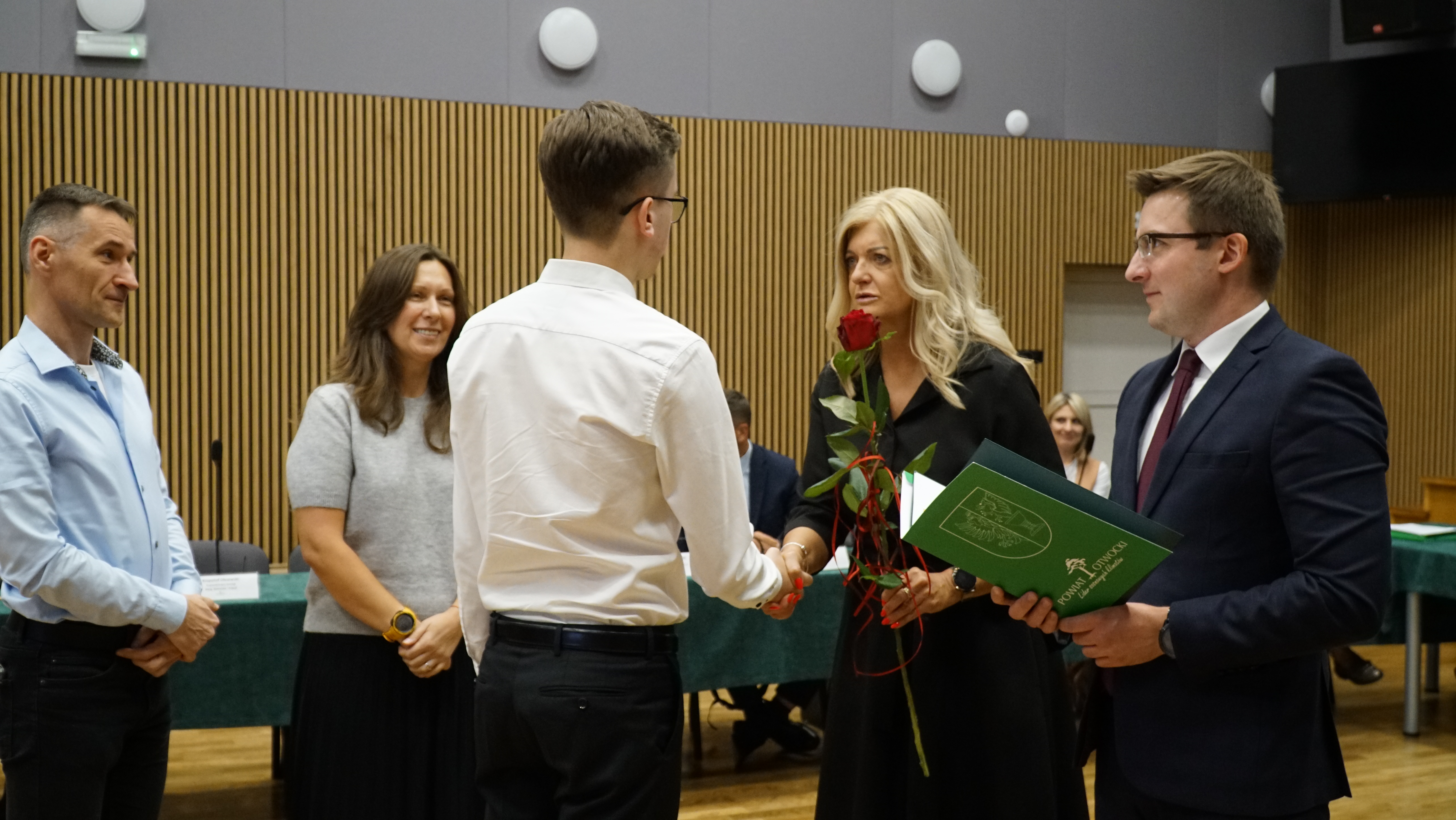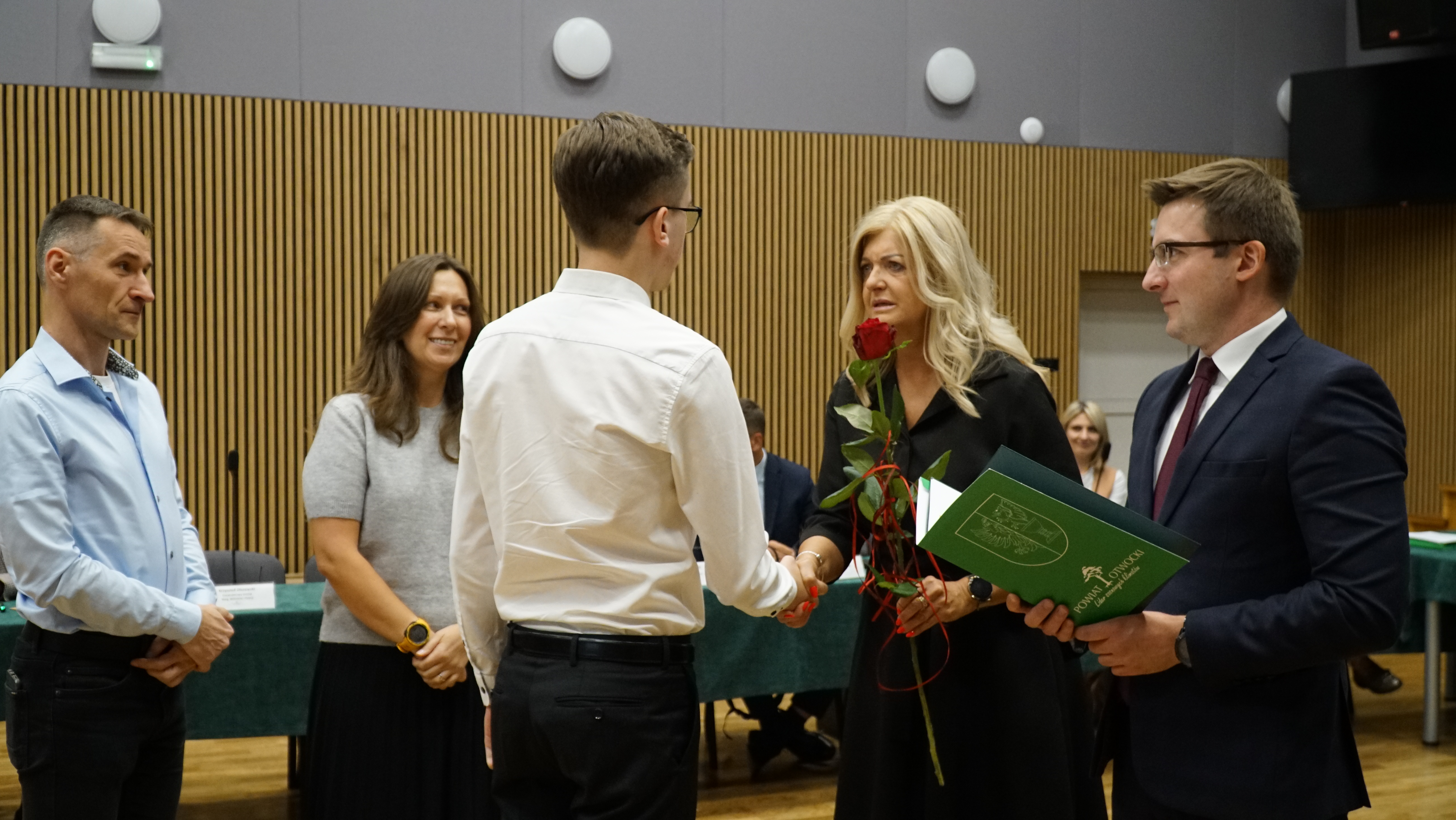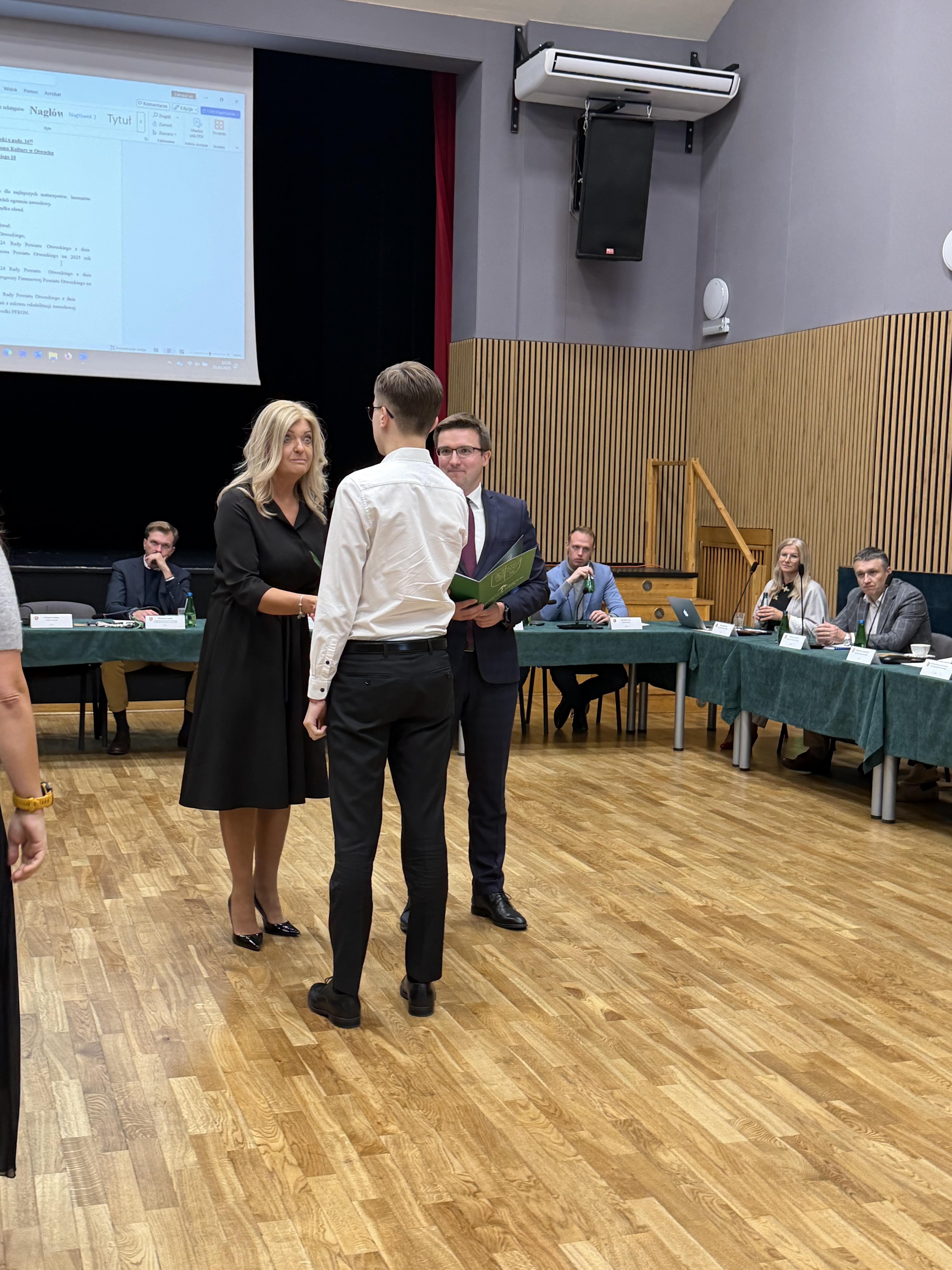 W czwartek 25 września Starosta Powiatu Otwockiego p. Tomasz Laskus oraz Przewodnicząca Rady Powiatu Otwockiego p. Grażyna Kilbach wręczyli nagrody Rady Powiatu Otwockiego dla najlepszych maturzystów, laureatów i finalistów olimpiad i uczniów, którzy najlepiej zdali egzamin zawodowy. Pogratulowali nagrodzonym wspaniałych wyników oraz życzyli powodzenia i kolejnych sukcesów na dalszej drodze kształcenia.