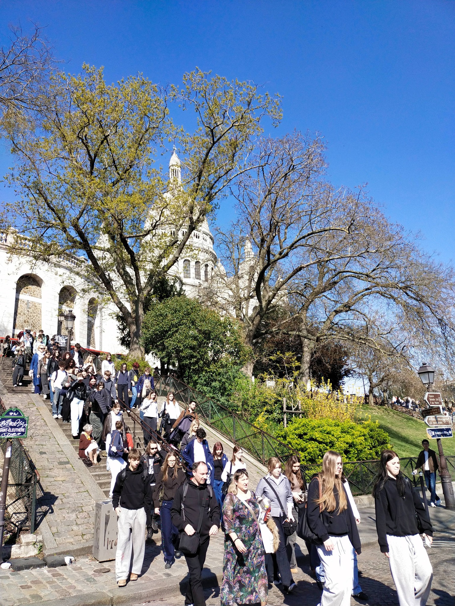 Piątego dnia odwiedziliśmy dzielnicę Montmartre, gdzie podziwialiśmy bazylikę Sacré-Cœur oraz klimatyczne uliczki pełne artystów. Z jej tarasu rozciągał się piękny widok na całe miasto. Spacerując po wąskich uliczkach, mogliśmy zobaczyć artystów malujących portrety i sprzedających swoje prace. Był to jeden z najbardziej urokliwych punktów wycieczki. Następnie poszliśmy z wizytą do Muzeum d’Orsay gdzie podziwialiśmy przepiękne dzieła impresjonistów, udało nam się wejść na nowo otwartą wystawę „Renoir i miłość”, która nas oczarowała.