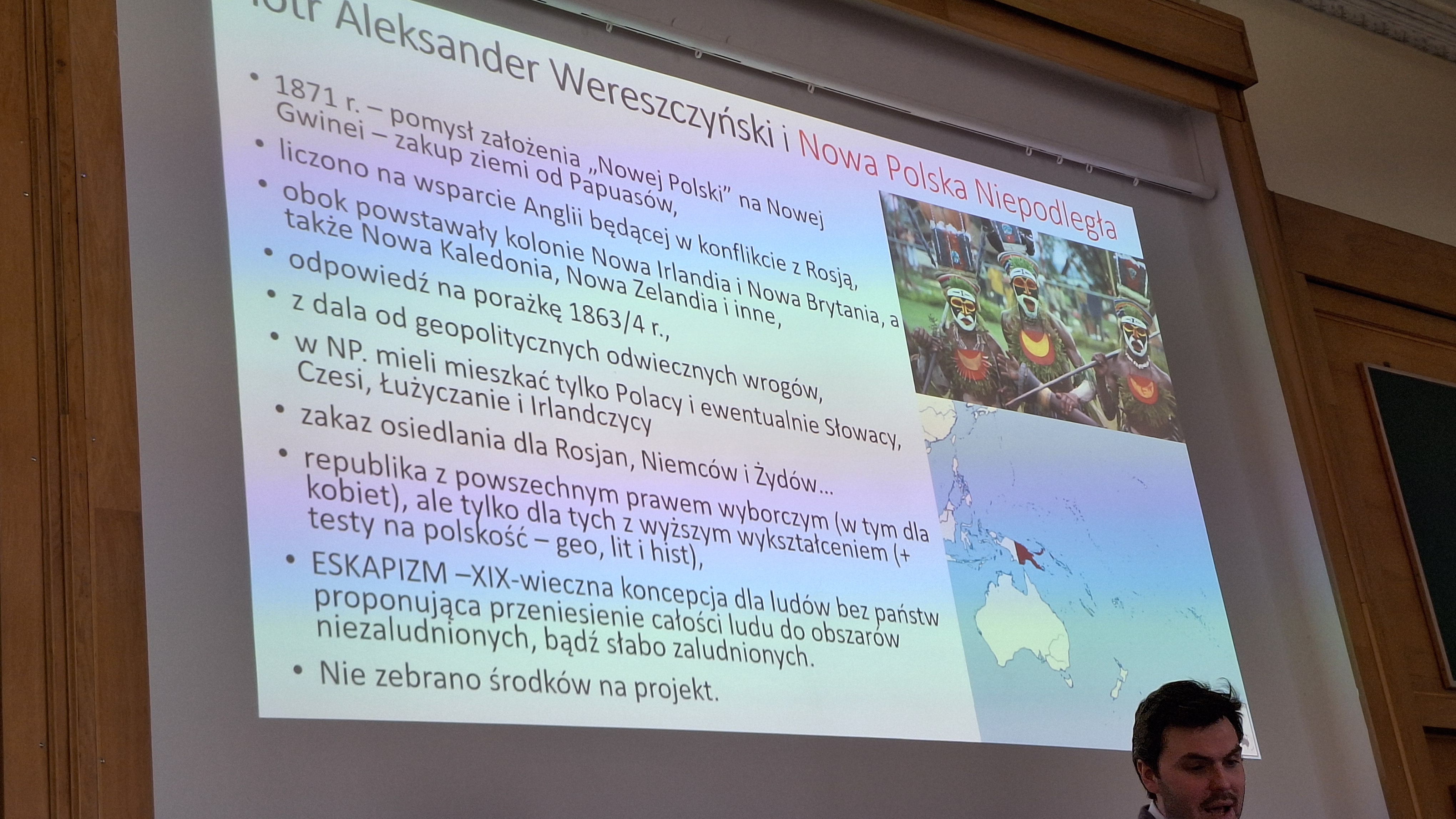 Punktem kulminacyjnym wyjazdu był wykład dr. Krzysztofa Górnego pt. „Czy Polska budowała imperium kolonialne? Meandry polskiego ekspansjonizmu zamorskiego”. Prowadzący w niezwykle interesujący sposób opowiadał o próbach zdobycia przez Polaków terytoriów zamorskich, m.in. na Madagaskarze, w Gambii i Liberii. Poruszył również temat sposobów przedstawiania zagadnień kolonialnych w literaturze oraz zagrożeń wynikających z ich uproszczonej interpretacji.