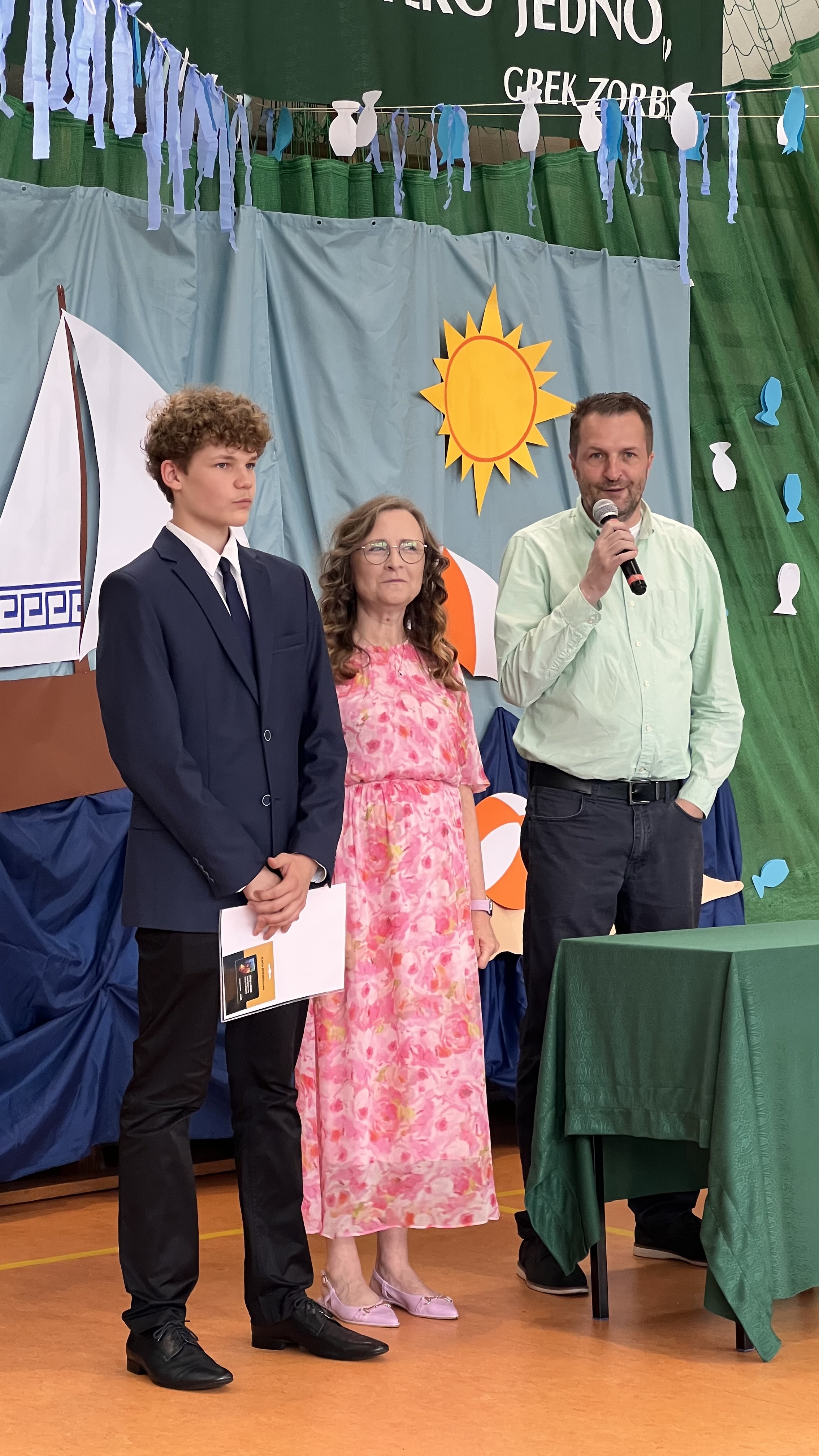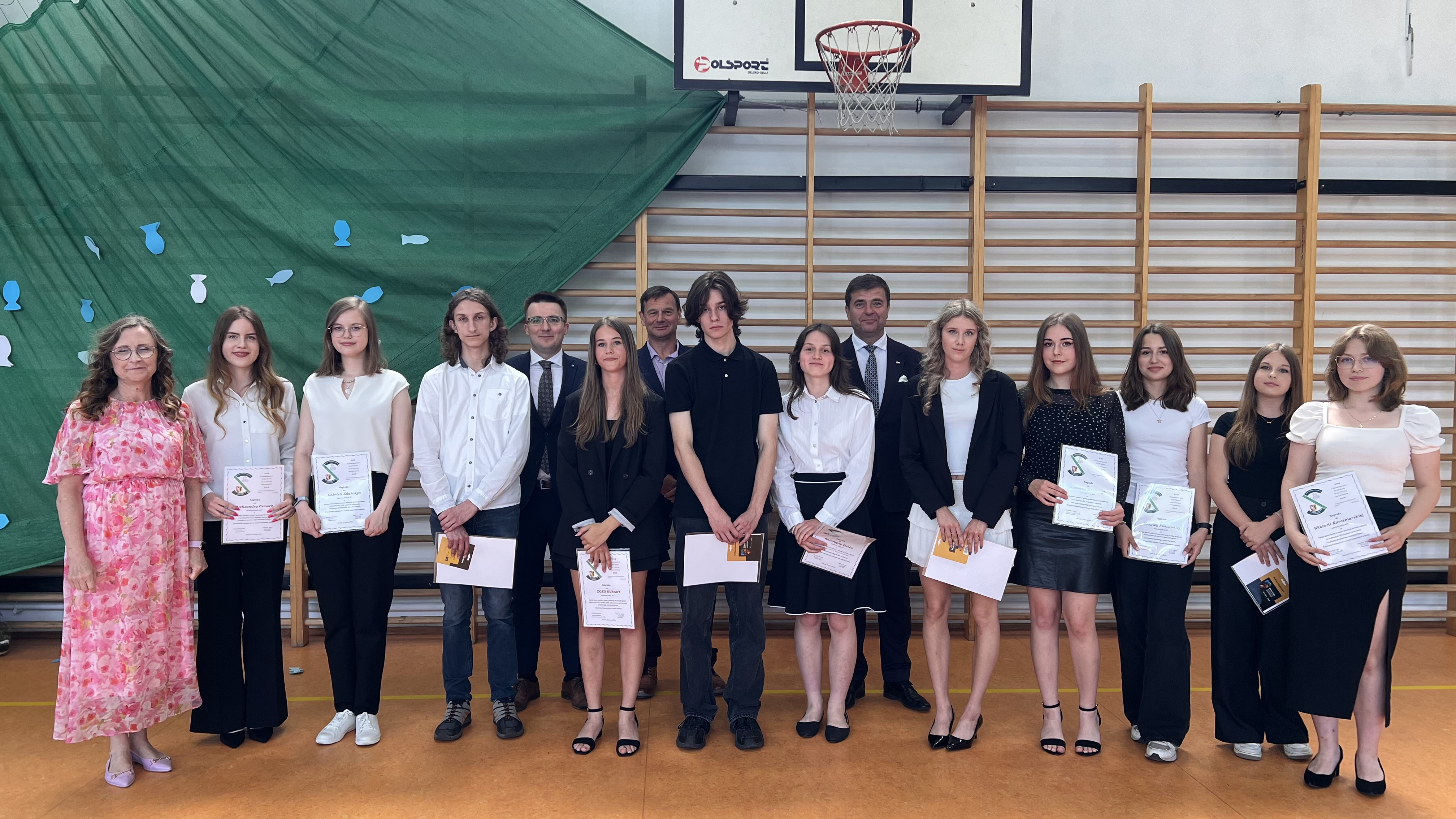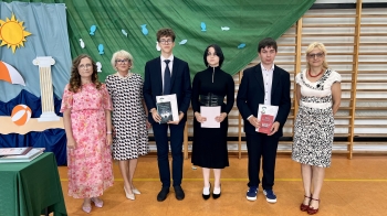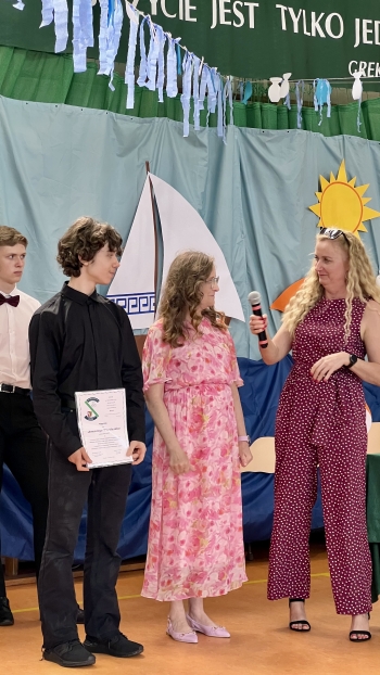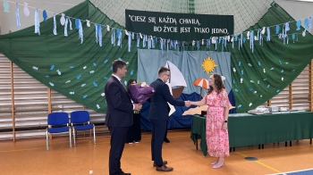 Następnie uczniowie z najwyższą średnią i frekwencją, laureaci konkursów i olimpiad zostali uhonorowani poprzez wręczenie okolicznościowych dyplomów i świadectw z wyróżnieniem i nagród.